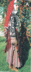 2. Sırta Giyilenler: Bürümcük gömlek, iç gömlek, göynek, şalvar (ayaklık), üçetek, göğüslük, deyre, dizlik öngerge (kertmeli önlük), bel bağı, libade, fermane (kesik yelek), örme kuşak,
